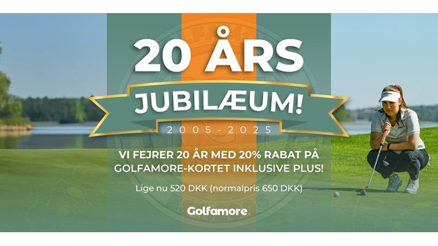 Golfamore fylder 20 år, og det vil vi gerne fejre sammen med dig! Netop nu får du 20% rabat på Golfamore inkl. PLUS. En perfekt mulighed for at gøre din golfsæson både billigere og sjovere!