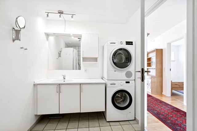 Altanen mod sydvest giver mange soltimer. Værelserne er lyse med praktiske skabsløsninger, og badeværelset har en tidløs stil med bruseniche og plads til vaskesøjle.